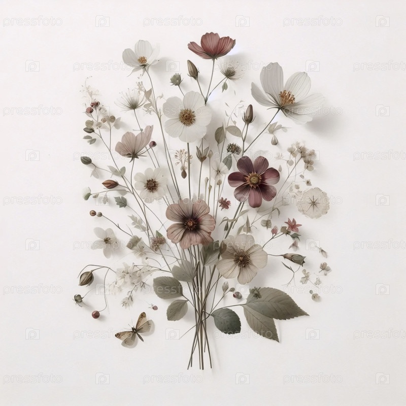 A dried flowers herbarium art print, Ai generated image А сушеные цветы гербария художественная печать, Ай создал изображение