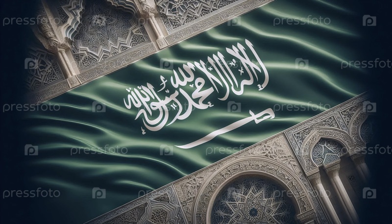 Саудовский флаг в исламских геометрических узорах, Ai generated image