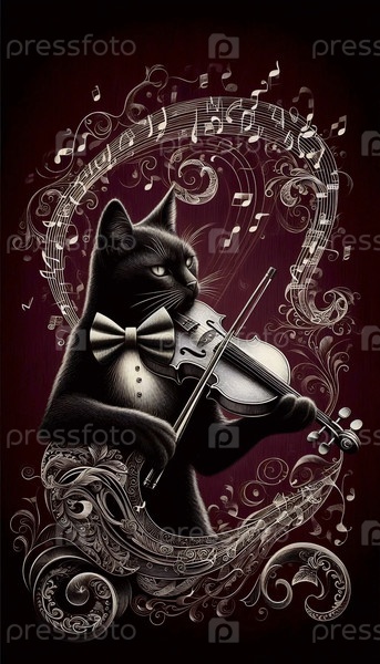 Одинокий кот играет на классической скрипке арт-принт, Ai generated image