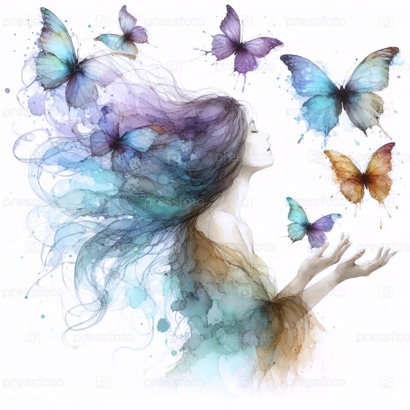 Бабочки, сделанные из полупрозрачных акварельных красок, Ai generated image