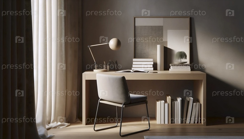 Элегантный нейтральный уголок домашнего офиса, Ai generated image