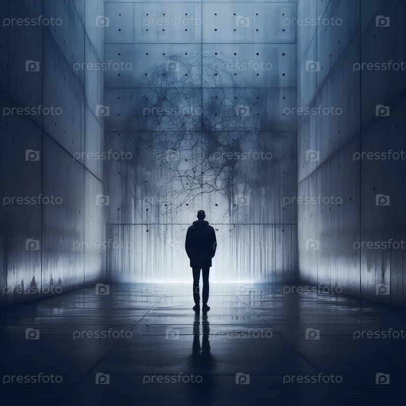 Силуэт в утреннем тумане на абстрактной городской стене, Ай создал изображение