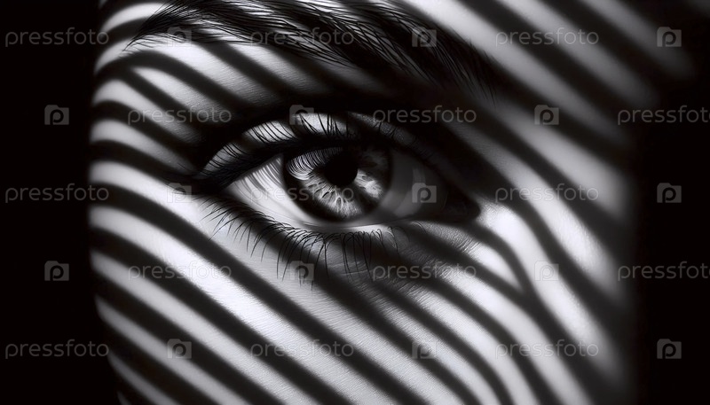Глаза, отражающие венецианские слепые полосы, Ai generated image