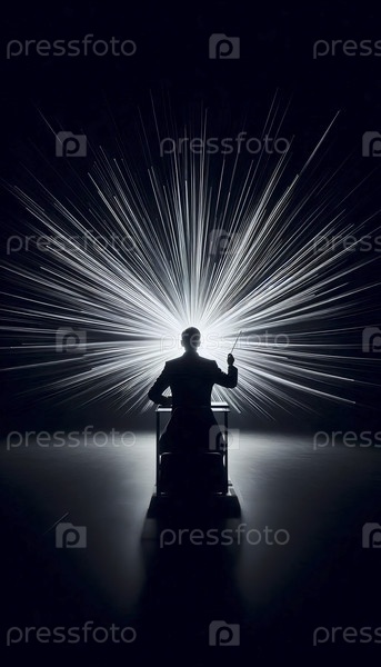 Широкий, минималистичный снимок в темной пустой звуковой сцене Ай создал изображение