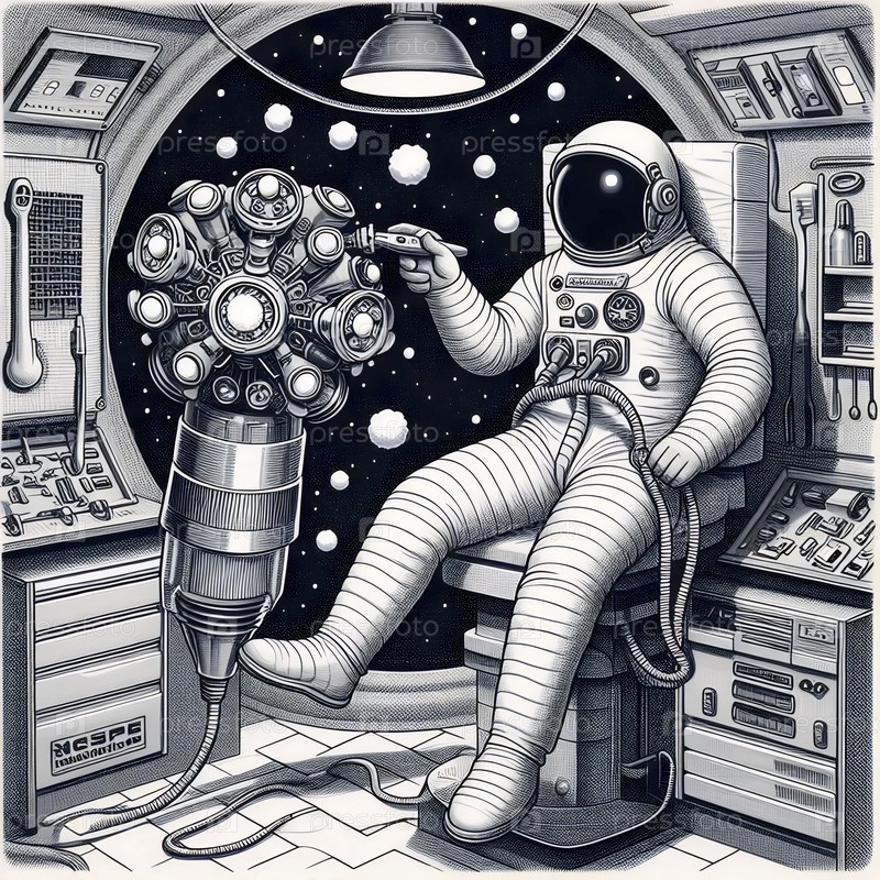 Астронавт брится с помощью элегантной атомной электрической бритвы во время плавания в условиях нулевой гравитации, Ai generated image