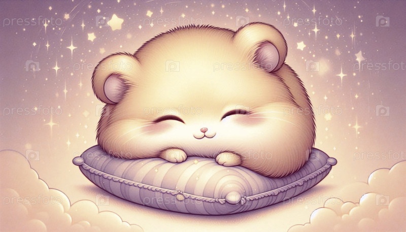 Подробная иллюстрация кавайи спящего хомстера, Ai generated image