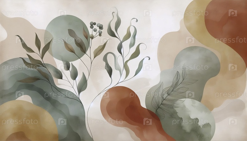 Бохо ботанический настенный принт с абстрактным акварелем, Ai generated image