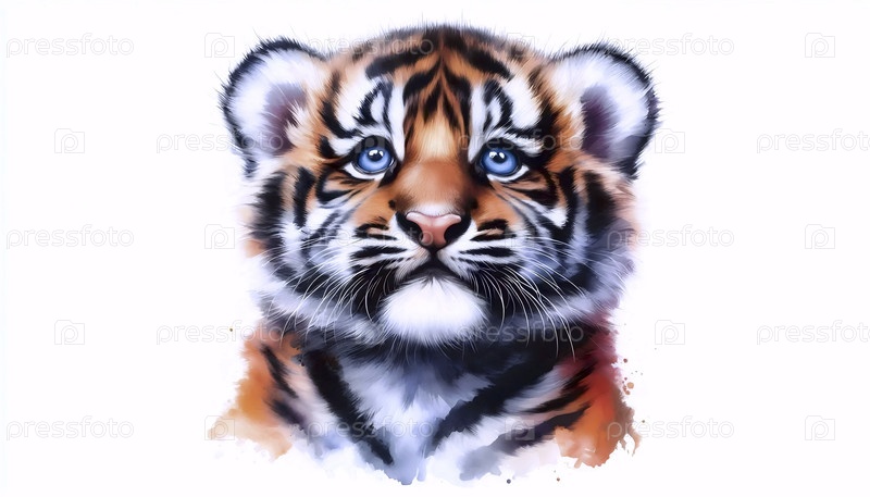 A Pleading Tiger Cub акварельный художественный печат, Ai generated image