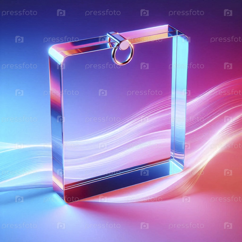 Прозрачный акриловый макет ключевого звена с металлическим кольцом на красочном градиентном фоне, Ai generated image