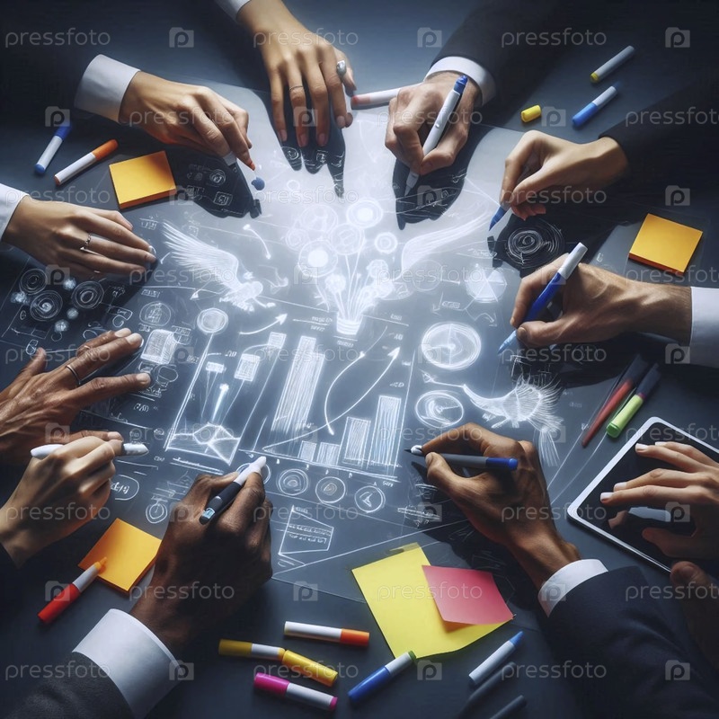 Подлинный момент сотрудничества между различными партнерами в современном стартапе, Ai generated image