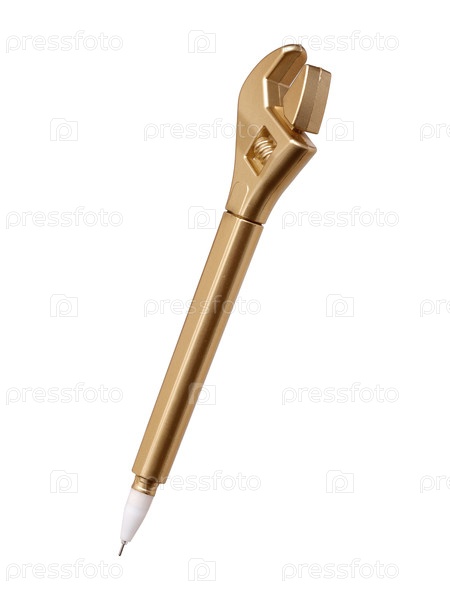 Золотая ручка в форме ключа изолирована на белом фоне, готовый вырез