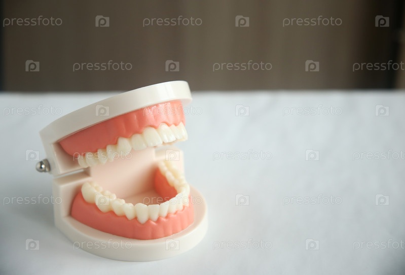 Искусственная человеческая челюсть на столе