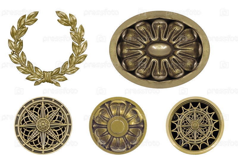 Набор золотых декоративных элементов, изолированных на белом фоне