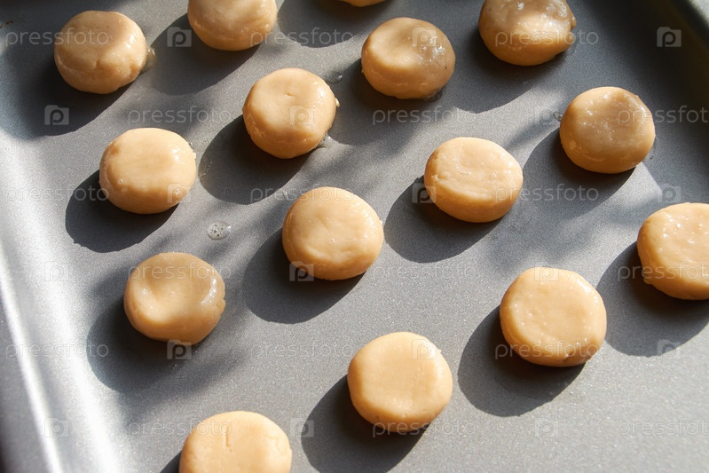 Печенье печенья тесто шарики на листах для выпечки Unbaked