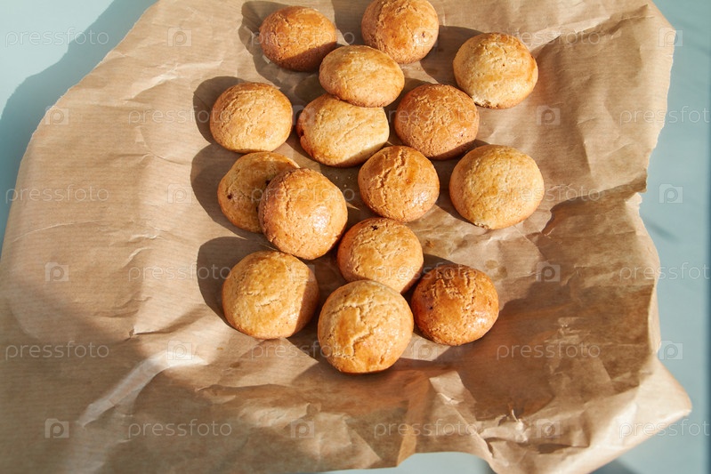 Золото-коричневые домашние печенье на пергаментной бумаге