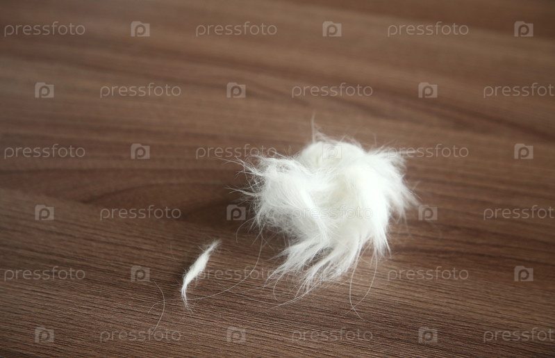 Клок шерсти лежит на деревянном столе