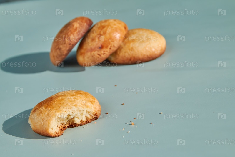 Золото-коричневые домашние печенье на светло-синем фоне