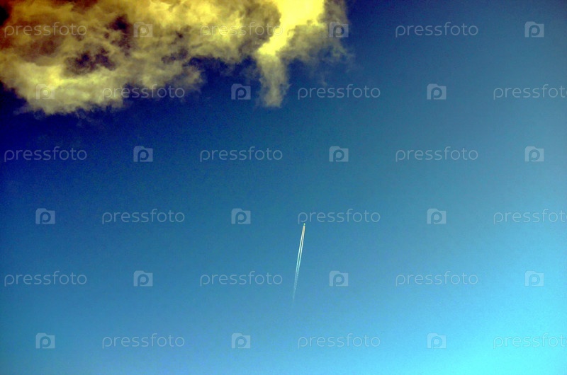 Небесный пейзаж, след от самолета