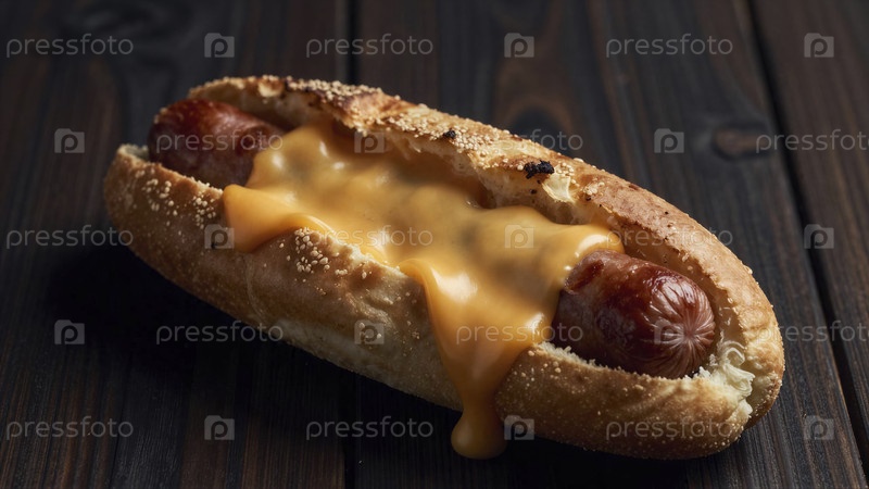 Горячая собака с жареным сыром на буханке из семян кунжута