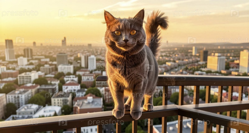 Приключения на балконе в солнечном городе Cat's Balcony Adventure