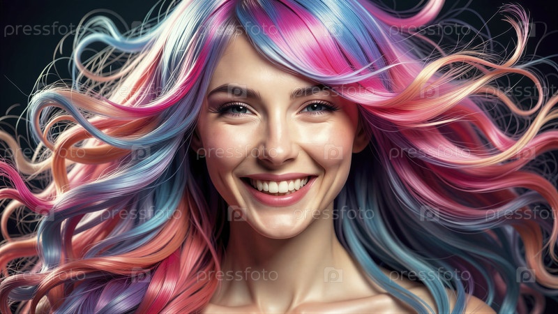 Красочные волосы и радостное выражение в цифровом художественном портрете