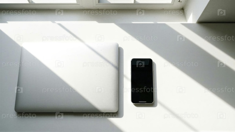 Минималистское рабочее пространство с MacBook и смартфоном
