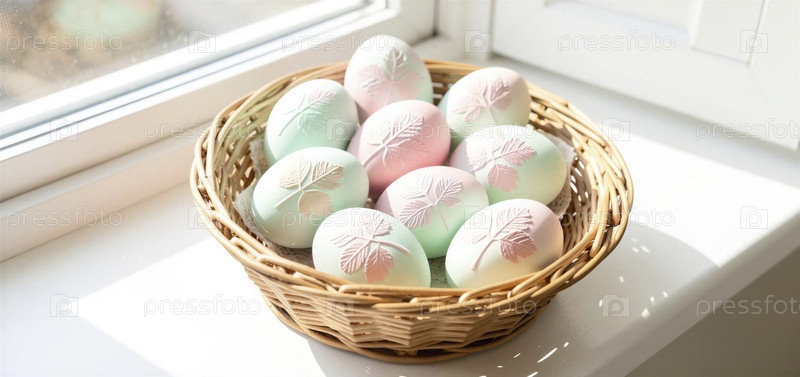 Пасхальные пастельные яйца с лиственничным узором в корзине