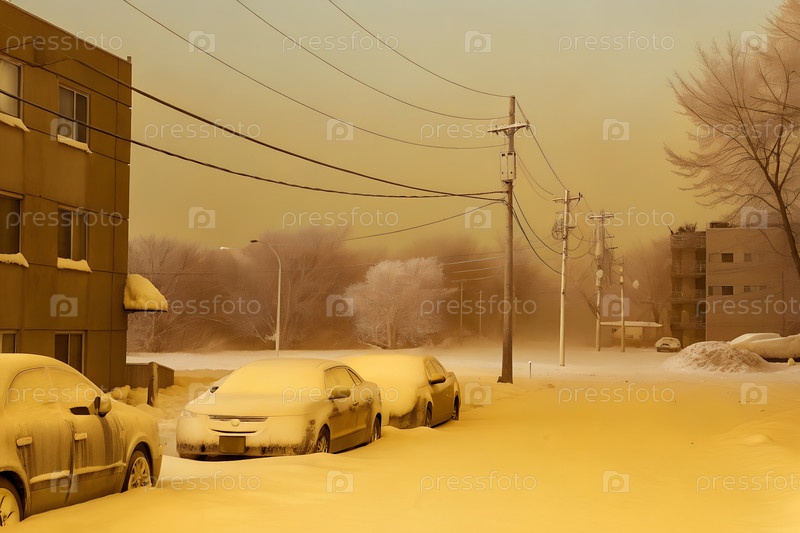 Замороженная улица после ледяной бури с автомобилями и домами, покрытыми льдом зимой в Квебеке (Канада)