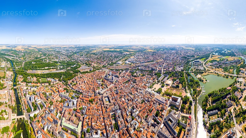 Мец, Франция.Панорама города в летний день.Солнечная погода.Вид с воздуха
