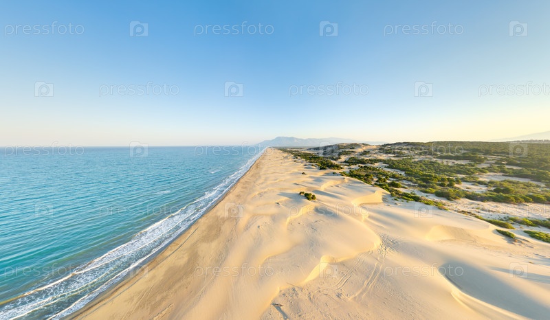 Природа просыпается на пляже Патара, дюны и море оживают ранним летним утром, нетронутая прибрежная сцена