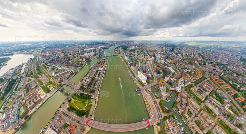 Роттердам, Нидерланды Панорама летнего города в дождливую погоду. Облака. Вид с воздуха