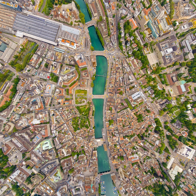 Цюрих, Швейцария Панорама города в пасмурную погоду Летний день Вид с воздуха