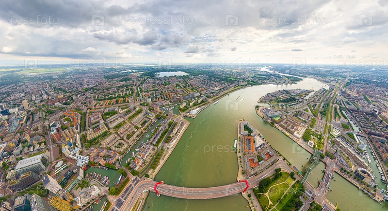 Роттердам, Нидерланды Панорама летнего города в дождливую погоду. Облака. Вид с воздуха