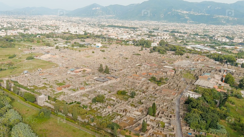 Помпеи - крупный древнеримский город, в настоящее время крупномасштабный археологический комплекс.Общий вид сверху, Aerial View Pompeii