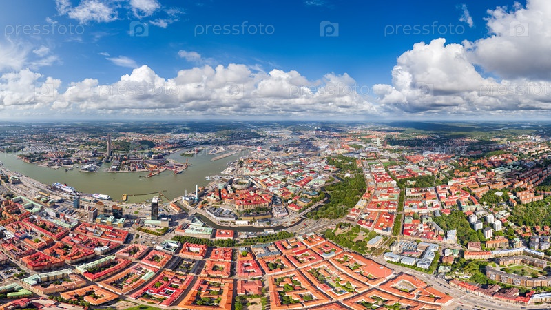 Гетеборг, Швеция Панорама города летом в пасмурную погоду