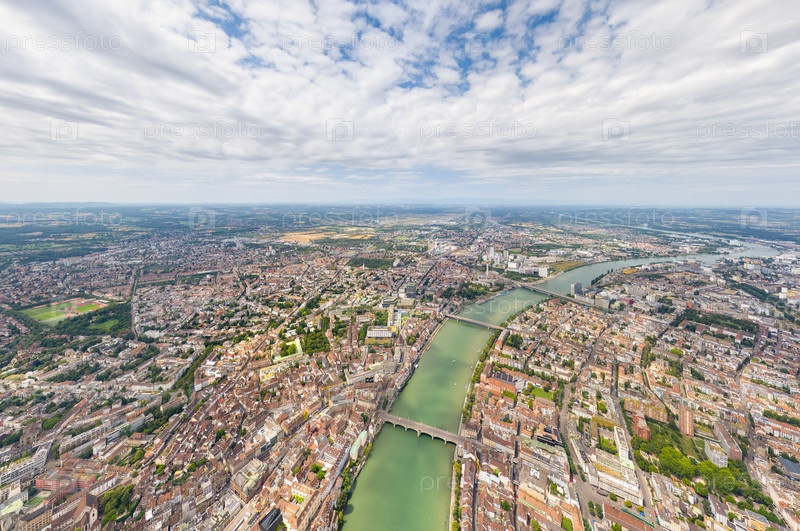 Базель, Швейцария Панорама города Река Рейн Летний день Вид с воздуха