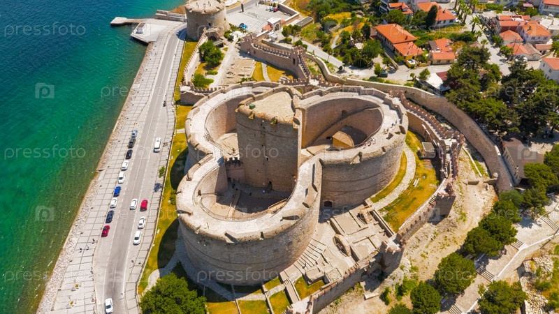 Крепость Килитбахир стоит на береговой линии с видом на Дарданелльский пролив в ясный солнечный день