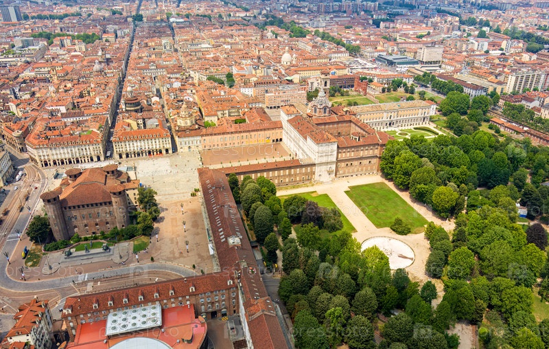 Палаццо Мадама, Пьяцца Кастелло - Городская площадь Королевский дворец в Турине Панорама центральной части города Вид с воздуха