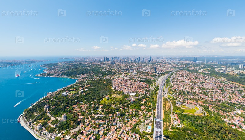 Золотое летнее сияние над европейской и азиатской сторонами города, соединенными Босфором