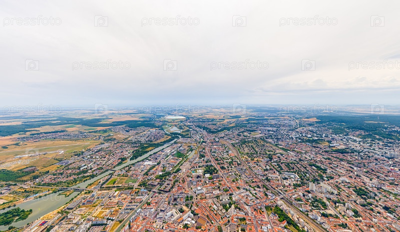 Нанси, Франция.Панорама города в летний день.Солнечная погода с облаками.Вид из воздуха