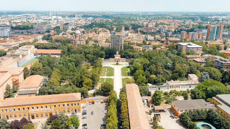 Модена, Италия Парк Giardino Ducale Estense Исторический центр Лето воздушное видение