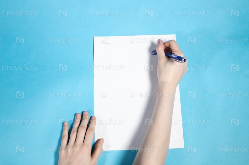 Выше вид руки пишет на пустой белой бумаге