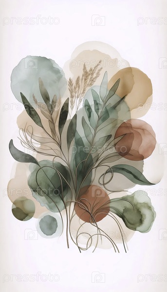 Бохо ботанический настенный принт с абстрактным акварелем, Ai generated image