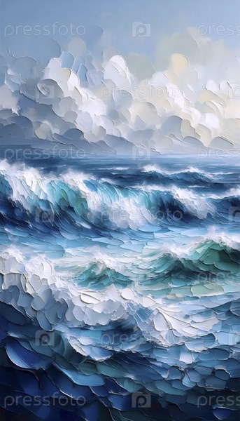 Текстированный масляной рисунок морского пейзажа, Ai generated image A