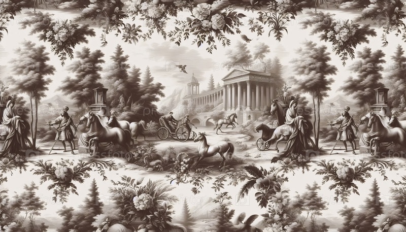 Коричневый цветочный рисунок французский A Toile de Jouy бесшовный дизайн, Ai generated image