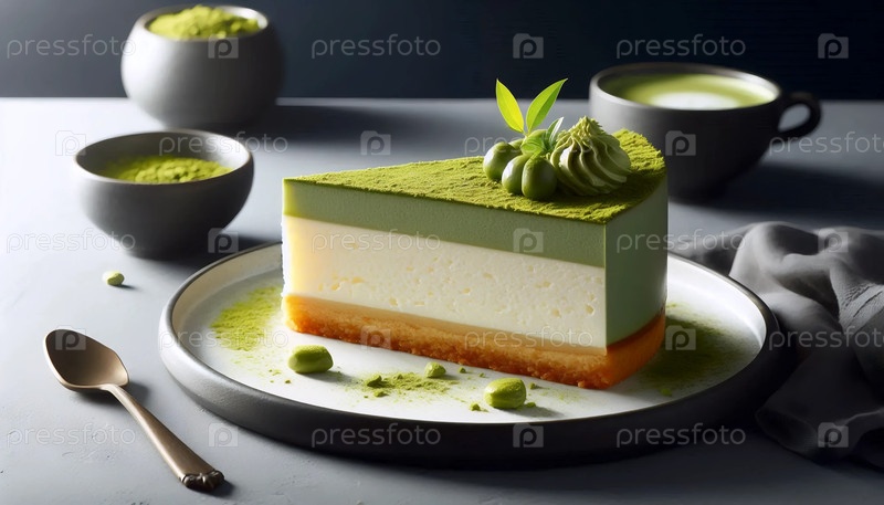 Вырезав сырный торт Matcha, Ai generated image