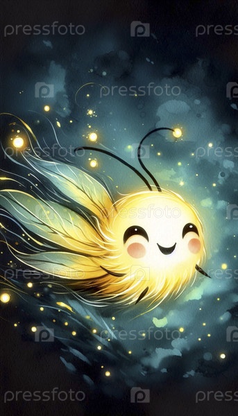 Sparkling Firefly Акварельная художественная печать, Ai generated image