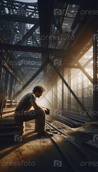 Более широкий экологический снимок паузируемого работника, вернувшегося к камере, Ai generated image