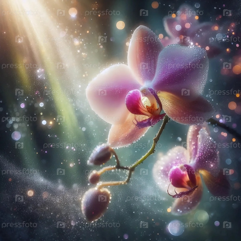 Орхидея со сверкающими частицами, Ai generated image
