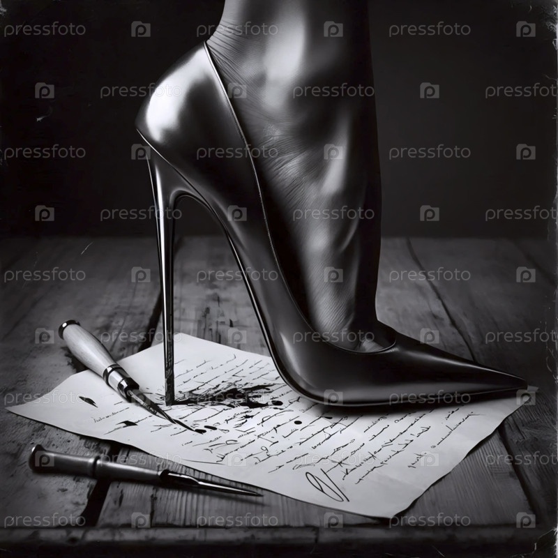 Штилетто на каблуке пробивает любовное письмо, Ai generated image